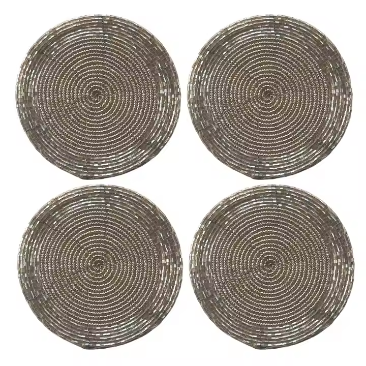 Ensemble de 4 sous-verres perlés de haute qualité Combo de couleur marron et blanc Protégez vos boissons de la poussière Graviers Restaurant Fournitures de mariage