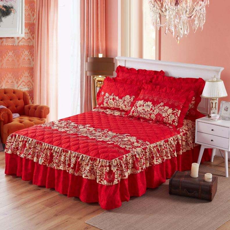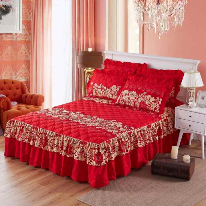 Ensemble de jupes de lit de haute qualité, couvre-lit double couche, drap de lit imprimé floral, jupe de lit bilatérale + 2 paires de taies d'oreiller