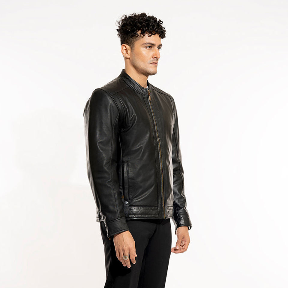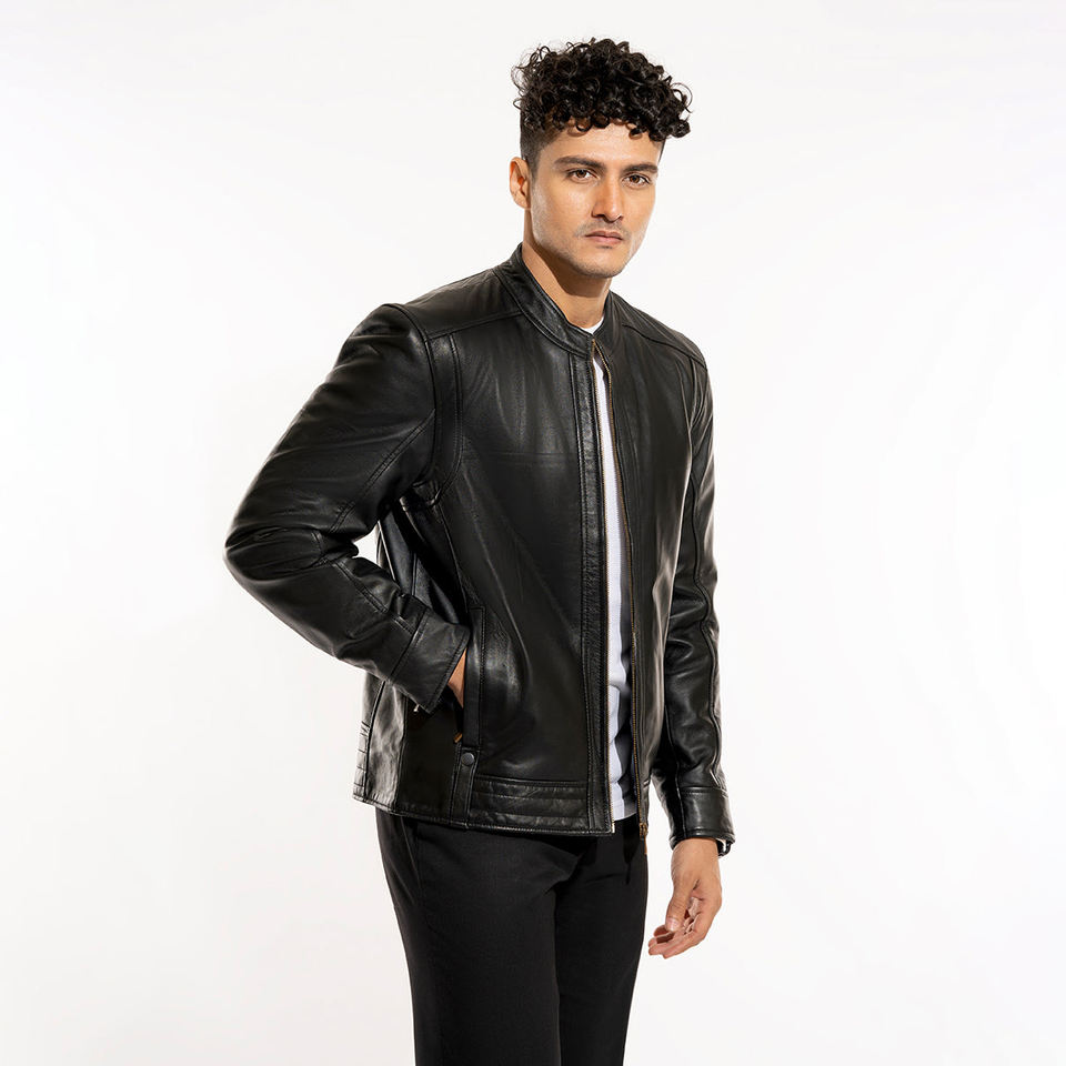 Veste en cuir de peau de mouton de haute qualité, au design optimal, avec impression de logo personnalisée, manches longues, col montant pour homme