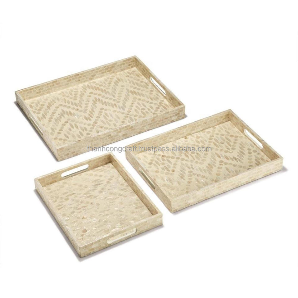 Plateaux de service ronds en rotin nacre de luxe, faits à la main au Vietnam, de haute qualité et très vendus