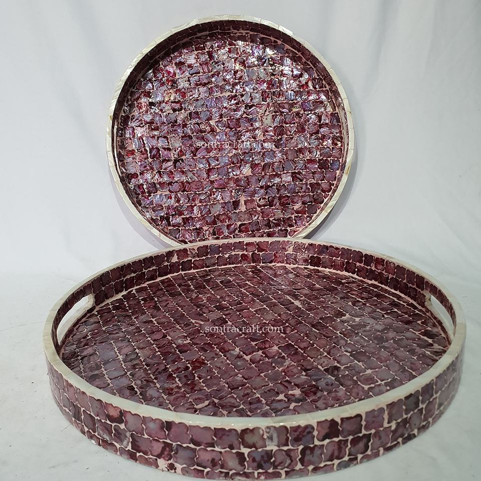 Plateaux de service en nacre de haute qualité, best-sellers, vente en gros, faits à la main au Vietnam, artisanat Son Tra STA1024-2