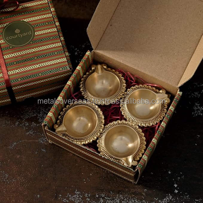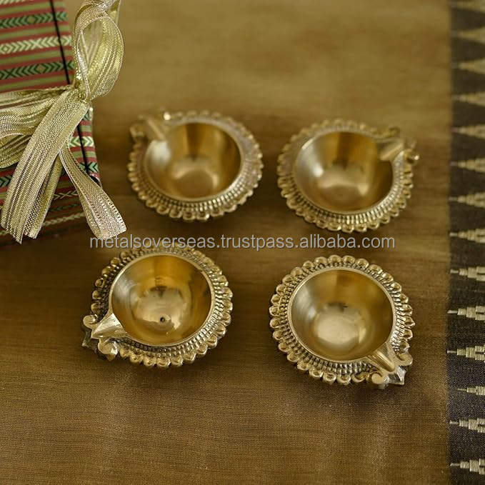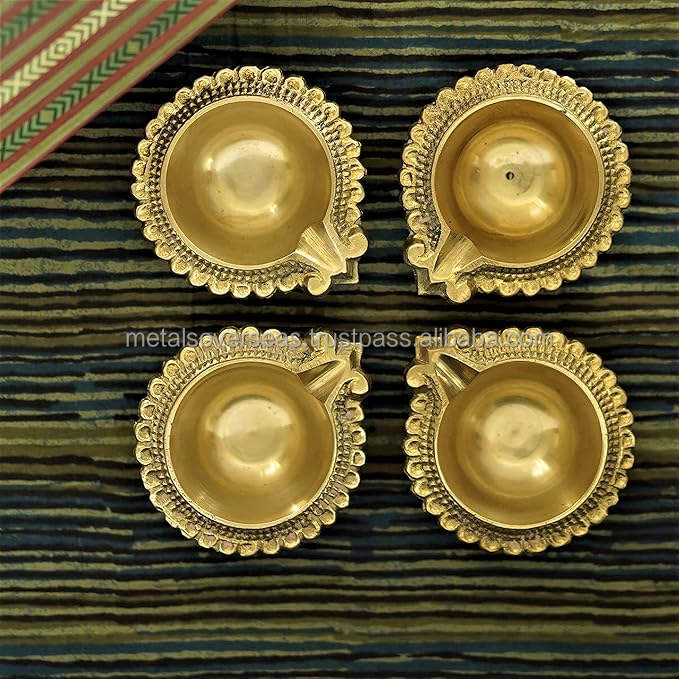 Diya en laiton religieux de haute qualité, best-seller, numérique, pour la décoration de la maison, du temple, ensemble de décoration Diwali, 4 pièces, en métal, fabriqué à l'étranger