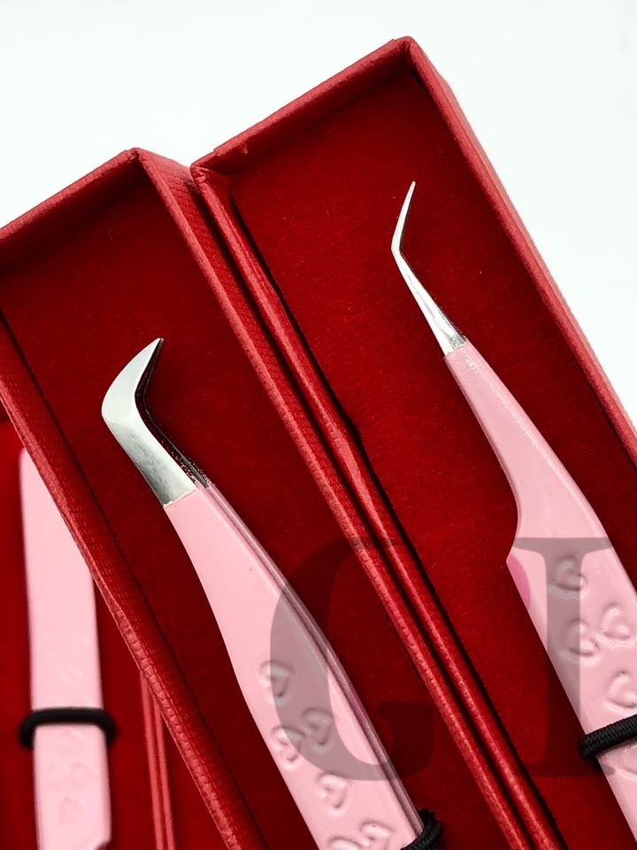 Haute Qualité Meilleur Volume Extension De Cils Pince À Épiler 45 & 90 Degrés Pro Droite Coeur Conception Rose Poudre Revêtement Beauté Outil