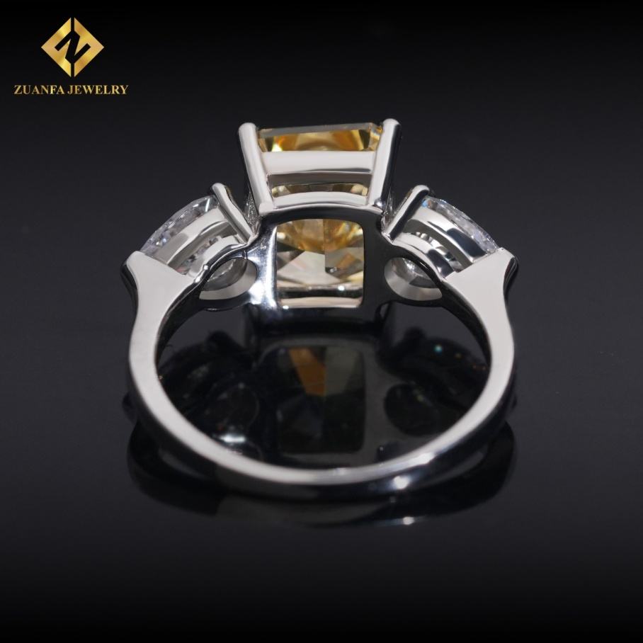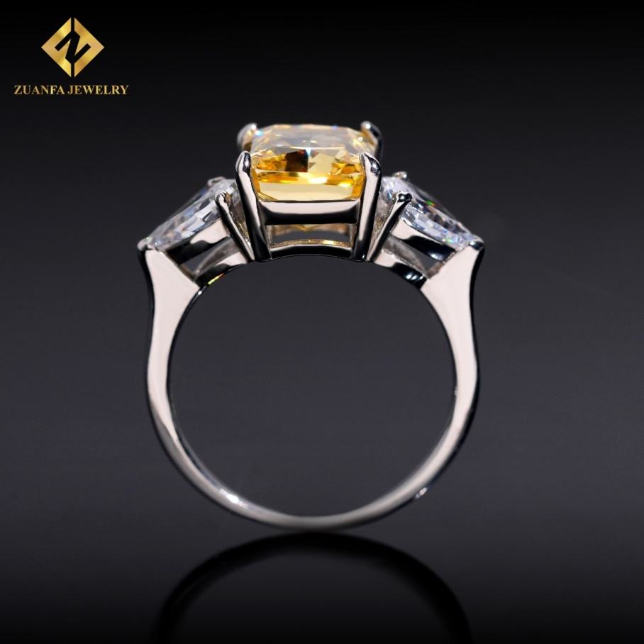 Bague pour femme en argent sterling 925 avec diamant VVS jaune doré de grande taille 8*10 mm de haute qualité