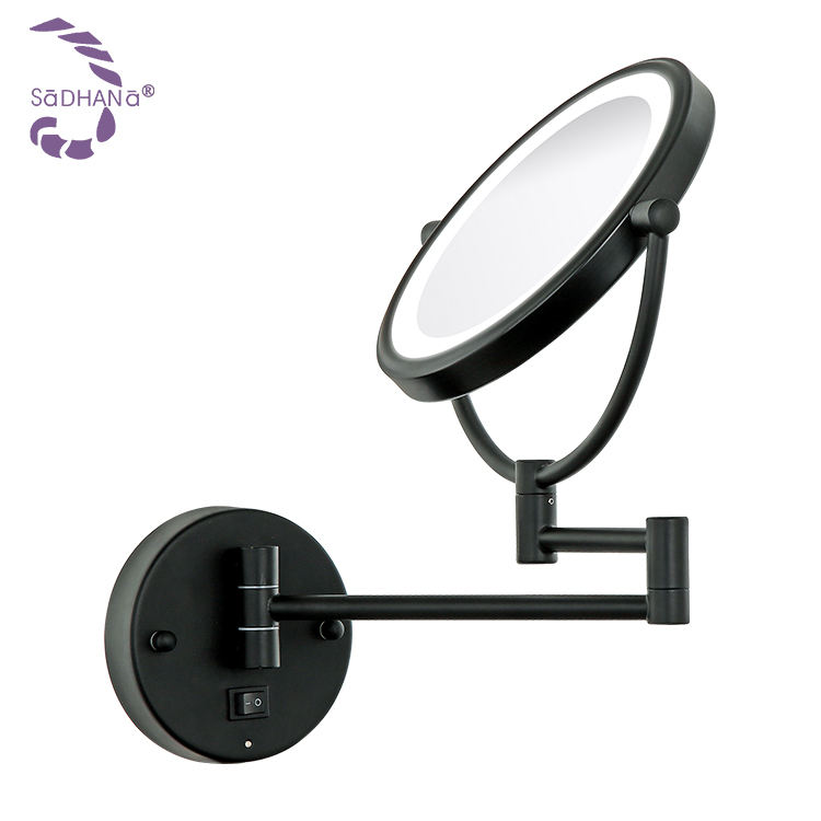 Miroir de rasage pour homme noir de haute qualité, salle de bain, rond, grossissant, extensible, pivotant, avec lumière LED