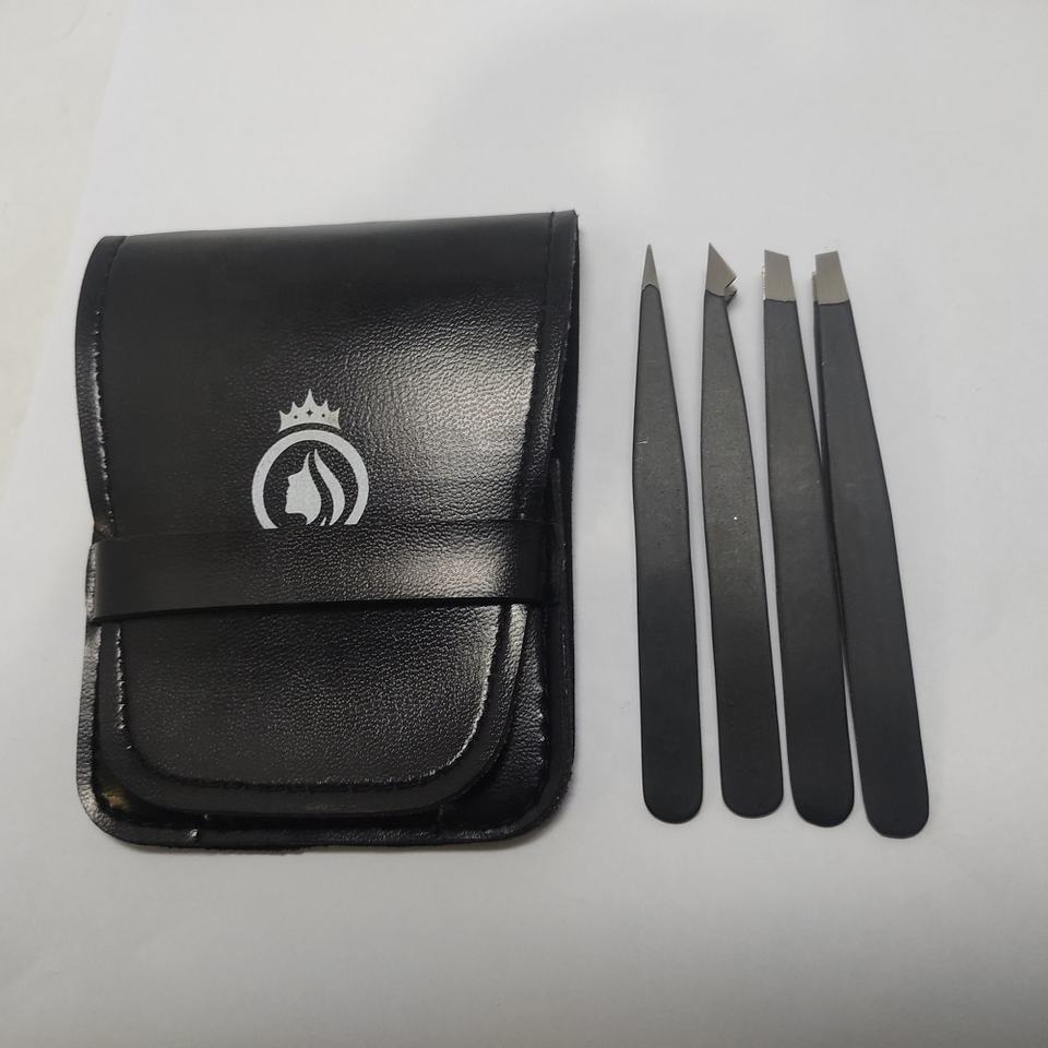 Pince à sourcils en acier inoxydable de qualité médicale noire mate de haute qualité outil de beauté de couleur douce avec pointe inclinée