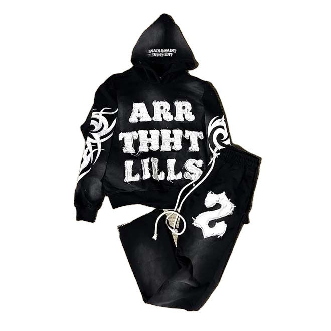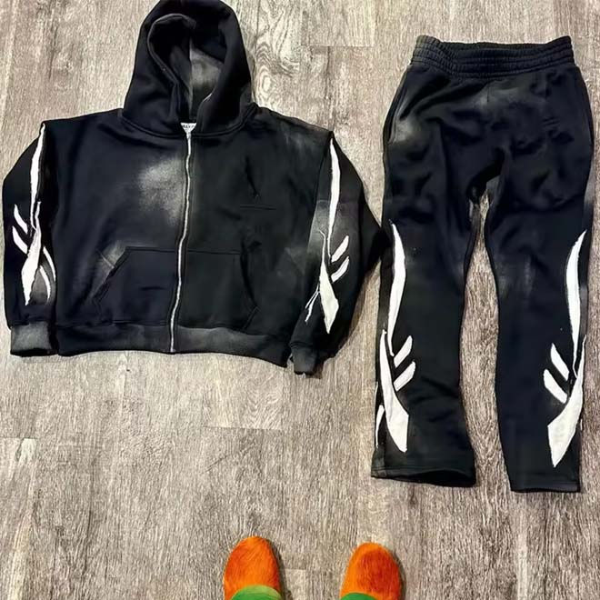 Sweat-shirt noir de haute qualité survêtement délavé à l'acide avec soleil délavé pour impression bouffante sweat à capuche avec logo personnalisé fermeture éclair complète