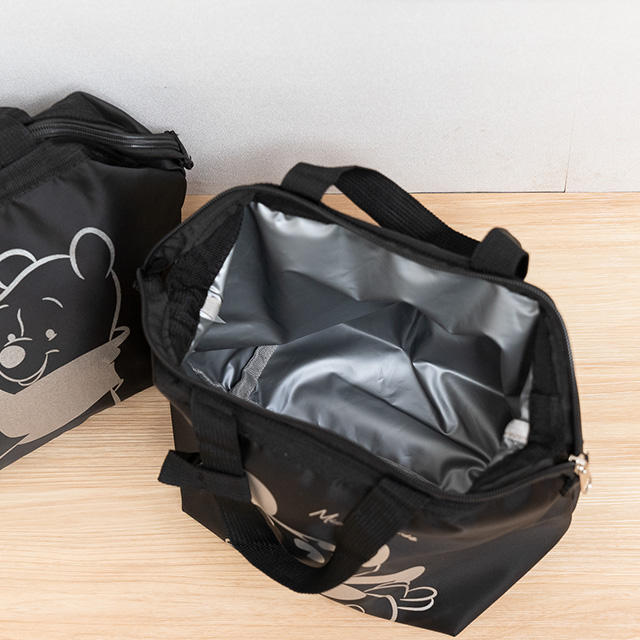 Sac isotherme réutilisable de haute qualité, style vintage noir, pour livraison de repas, pique-niques en plein air, ou déjeuner au bureau.