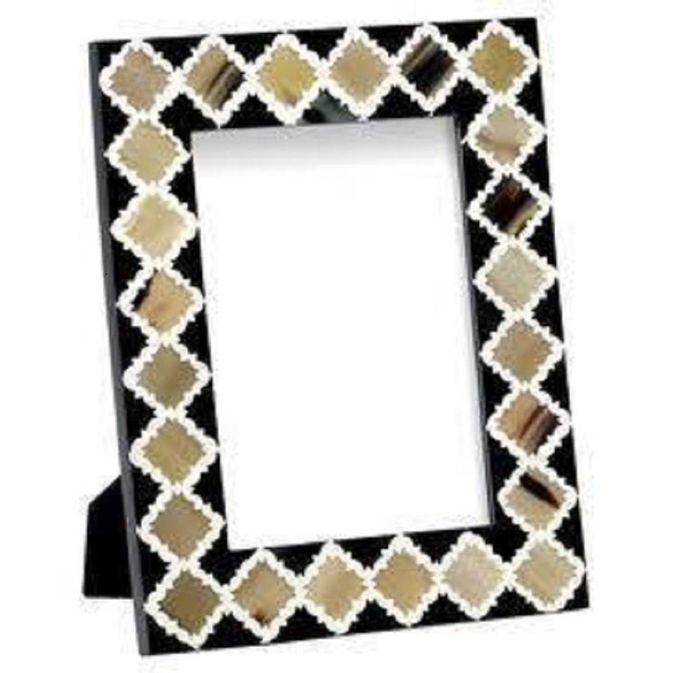Cadre photo rectangulaire en résine noir et blanc de haute qualité avec support mural en bois – Cadre tendance