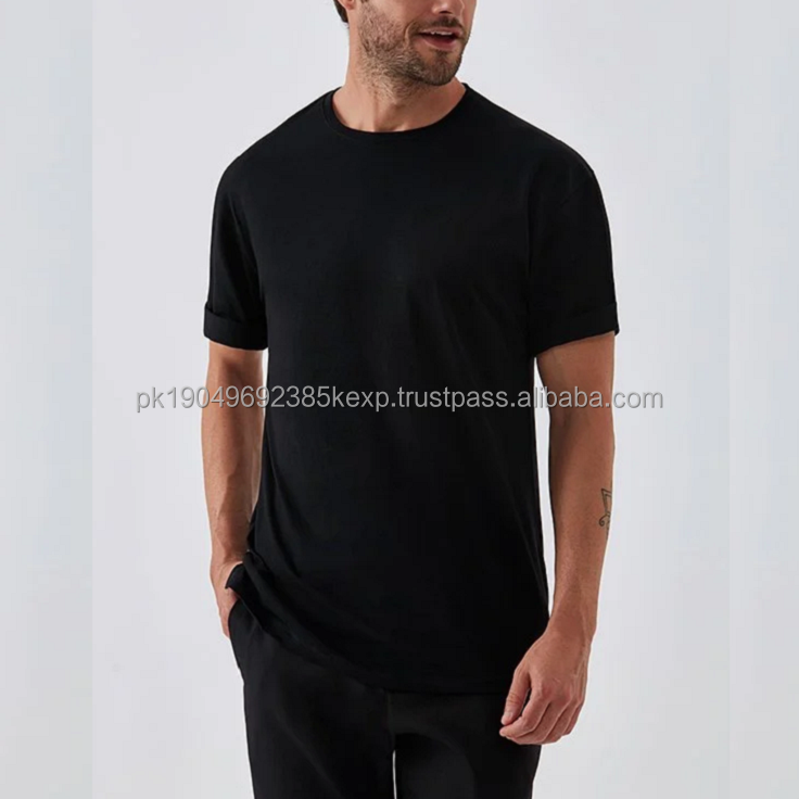 T-shirt noir vierge de haute qualité 100% coton premium T-shirts personnalisables avec logo Impression personnalisée T-shirt col rond pour homme