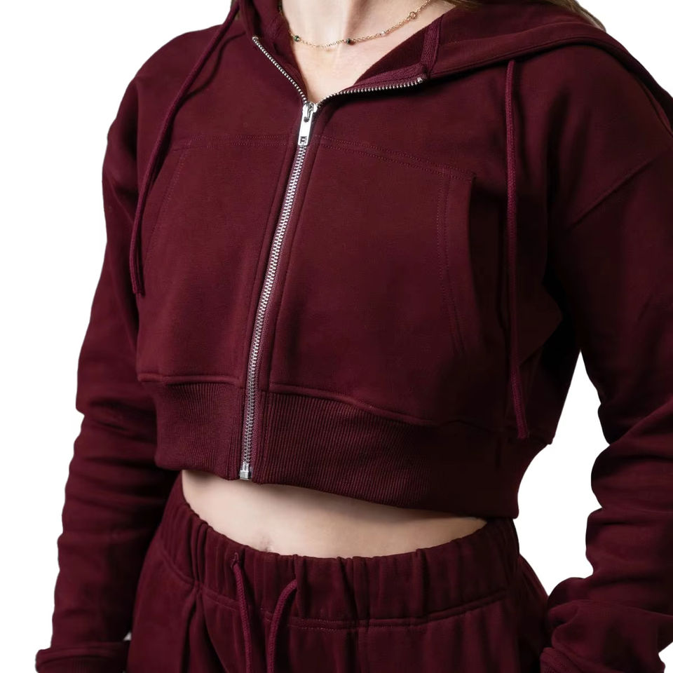 Sweat-shirts à capuche zippés d'hiver de haute qualité, coupe courte, personnalisables, avec logo personnalisé, pour femmes.
