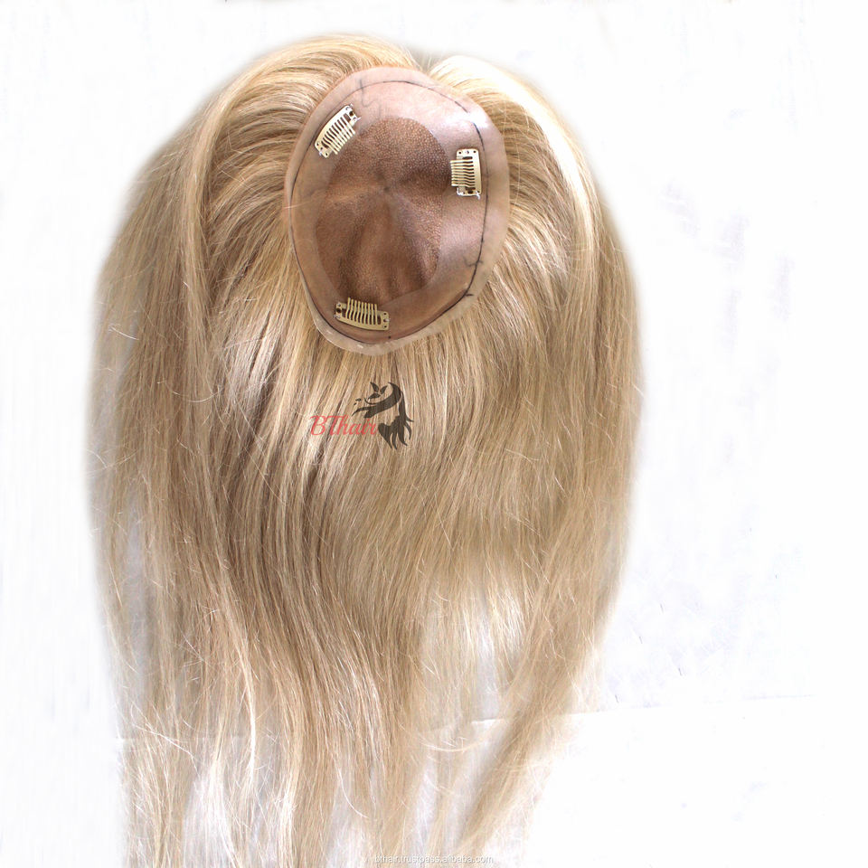 Toupet de cheveux blonds de haute qualité 100% humains, toppers de cheveux humains, couleur naturelle, base de cheveux en soie