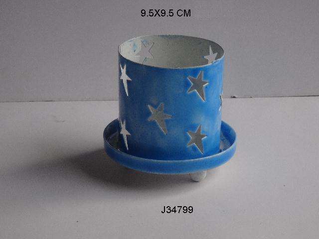Haute qualité bleu aluminium métal 'T' lumière support votif grande fleur motif céramique finition maison décorations de noël fer