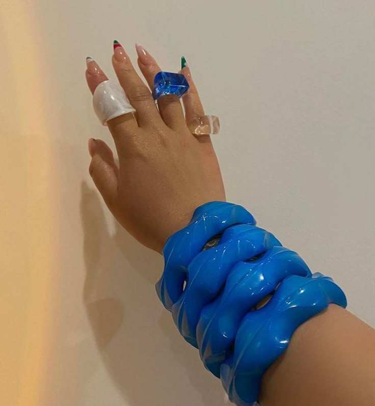 Bracelet large et épais en résine rayée bleu et blanc de haute qualité pour femme, accessoire de mode pour le quotidien