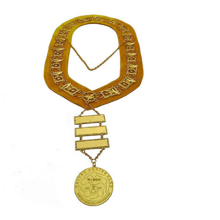 Collier de chaîne de haute qualité Blue Lodge plaqué or avec strass sur velours blanc, collier de chaîne maçonnique.