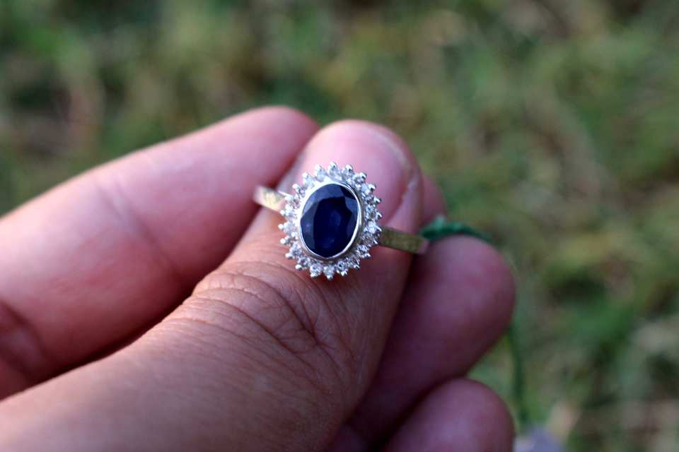 Bague en argent Sterling 925 et saphir bleu, bijoux de qualité supérieure, fait à la main, pierre précieuse