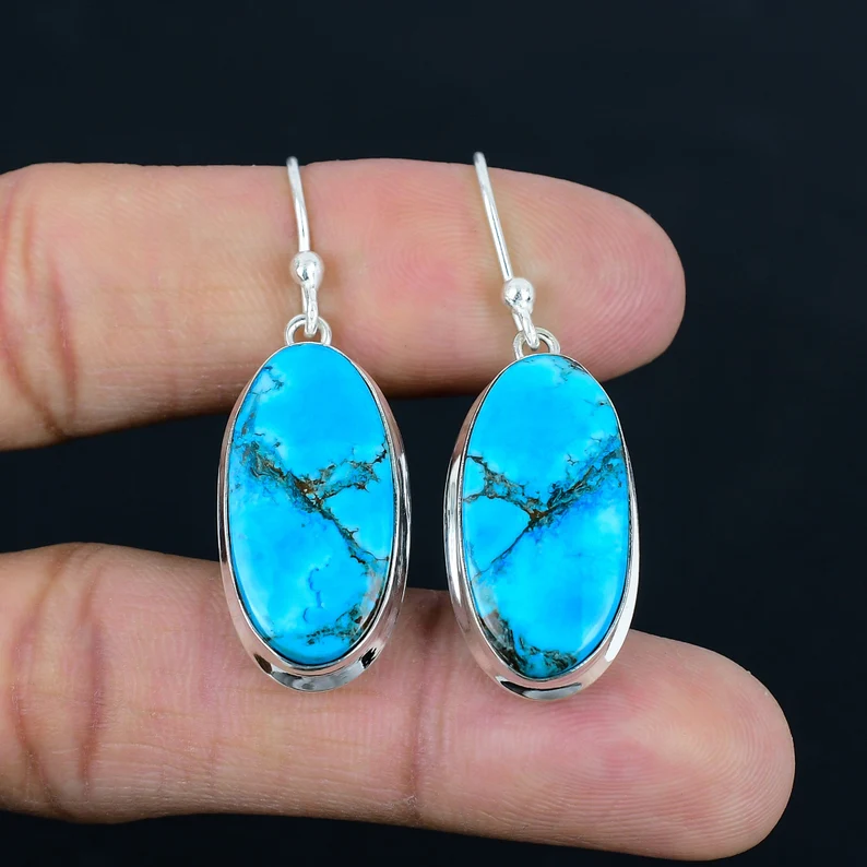 Haute qualité bleu Turquoise pierres précieuses boucles d'oreilles 925 en argent Sterling à la main goutte boucles d'oreilles cadeau de Pâques pour les femmes