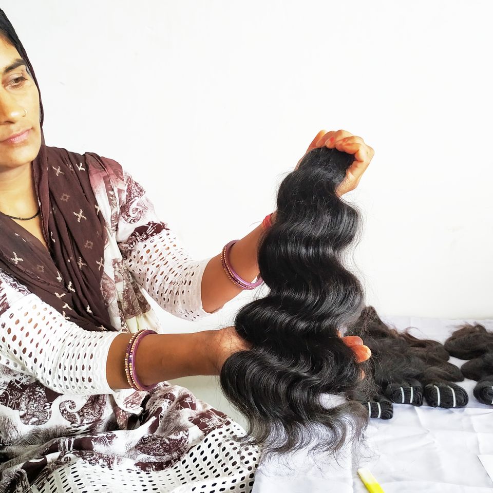 Traitement chimique de couleur naturelle de vague de corps d'extensions crues indiennes de cheveux vierges de double trame de haute qualité aucun de haute qualité
