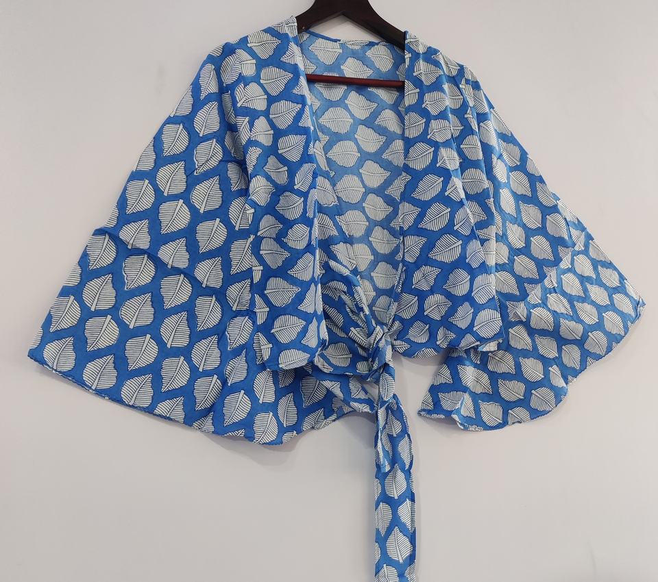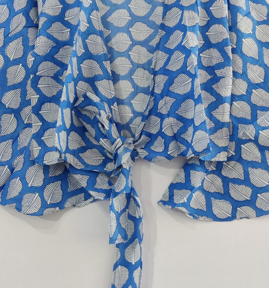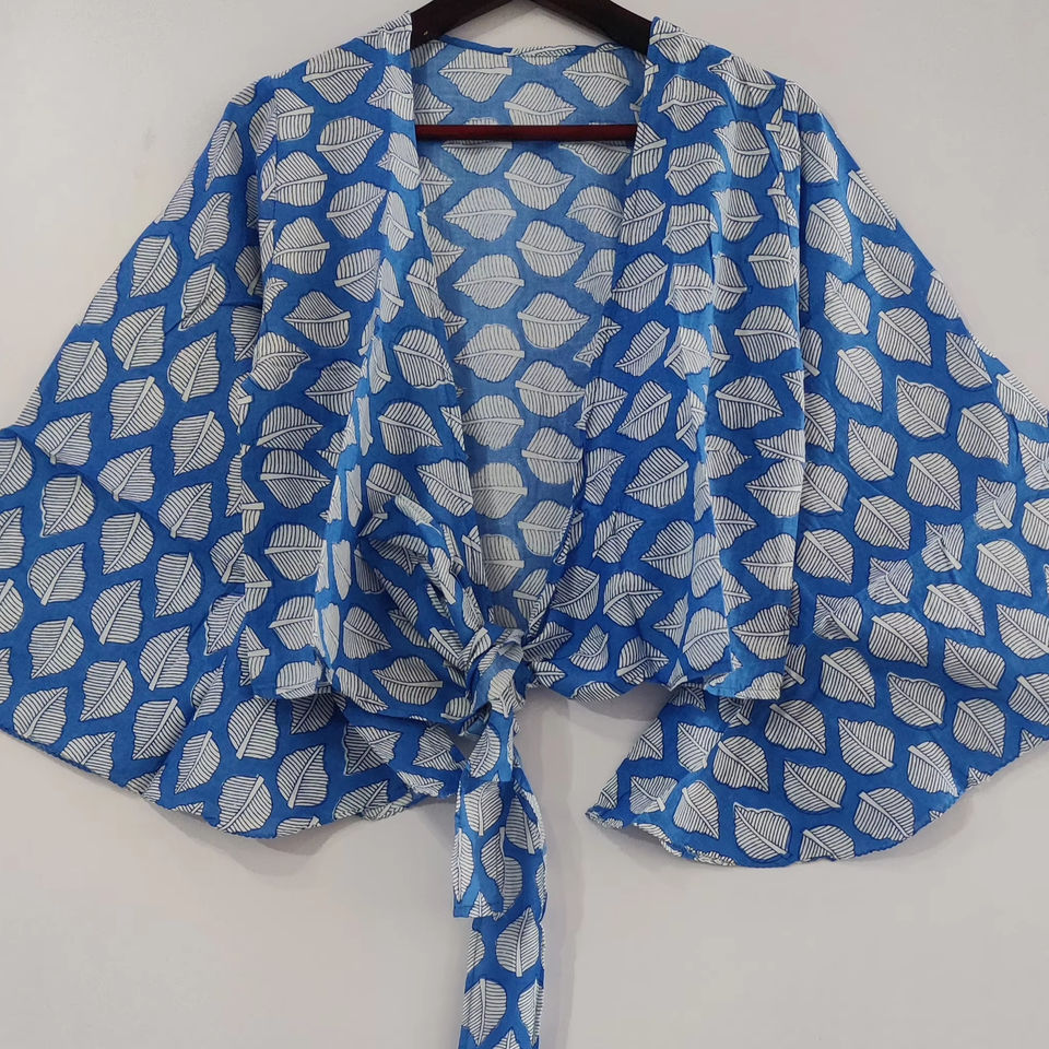 Haute Qualité Style Bohème Floral Imprimé Coton Crop Top Élégant Cloche Manches Hippie Wrap Cravate Conception Brodé À La Mode