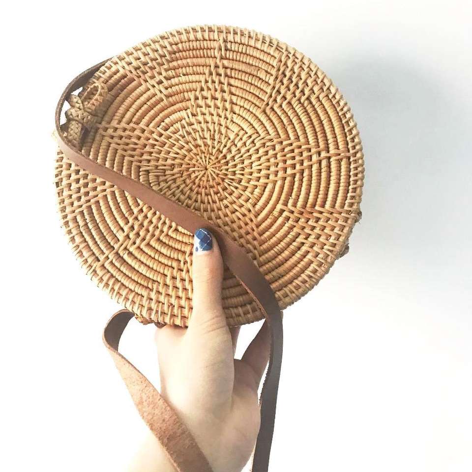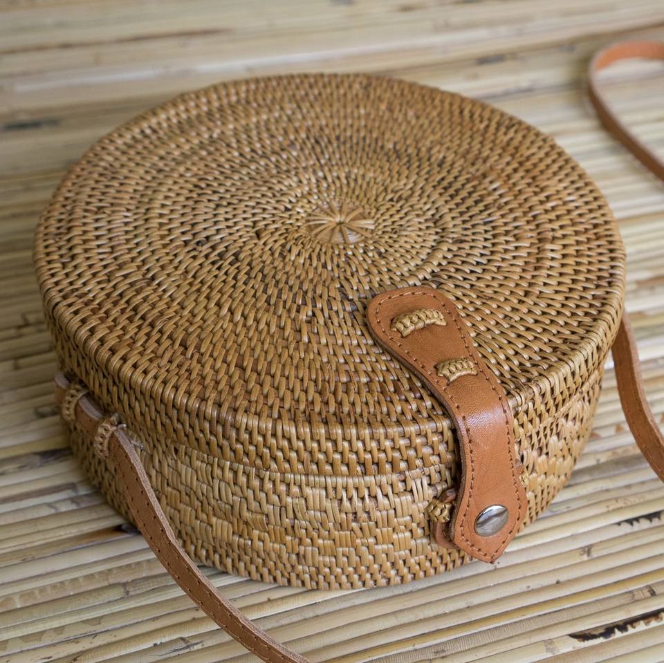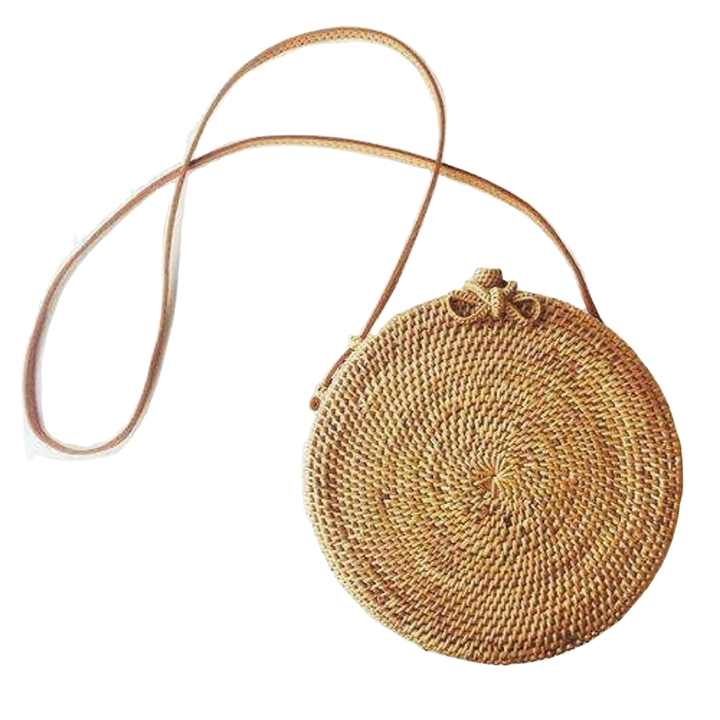 Sac de cantine en rotin Boho de haute qualité bandoulière personnalisée petits sacs ronds en rotin avec fermeture à glissière Produit chaud!