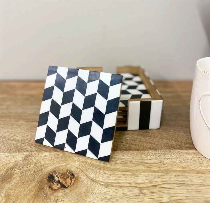 Ensemble de dessous-de-verre carrés modernes en os incrusté de haute qualité, durables, avec logo imprimé écologique, pour la maison et la restauration