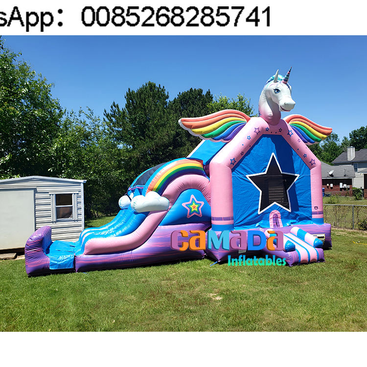 Château Gonflable de Haute Qualité avec Toboggan, Combo Château Gonflable et Trampoline, Idéal pour Location Événementielle et Fêtes