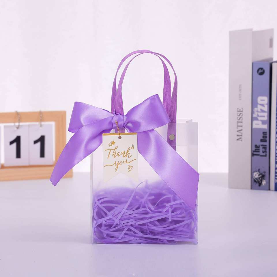 Sacs cadeaux transparents de haute qualité avec nœud, 25*9*22cm, imprimé étoiles coloré, pour remise de diplôme et fêtes d'anniversaire