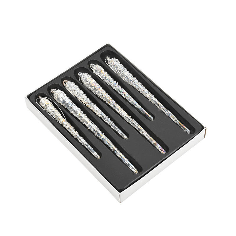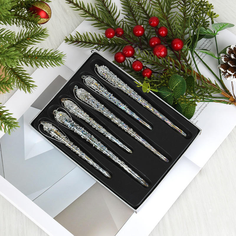 Décoration de Noël en boîte de haute qualité bande de glace en verre Transparent coloré ornements suspendus pour boule d'arrangement de scène d'arbre