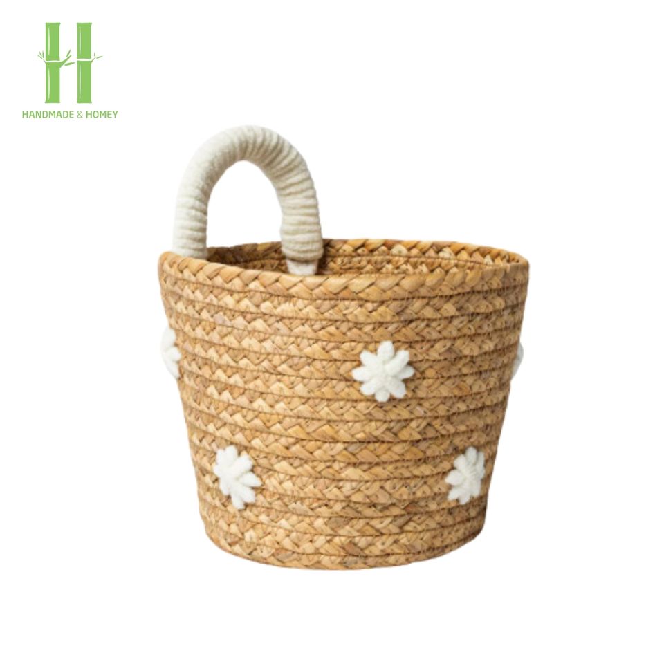 Jacinthe d'eau tressée de haute qualité petit panier de rangement rond décor maison OEM conception personnalisée à la main au Vietnam