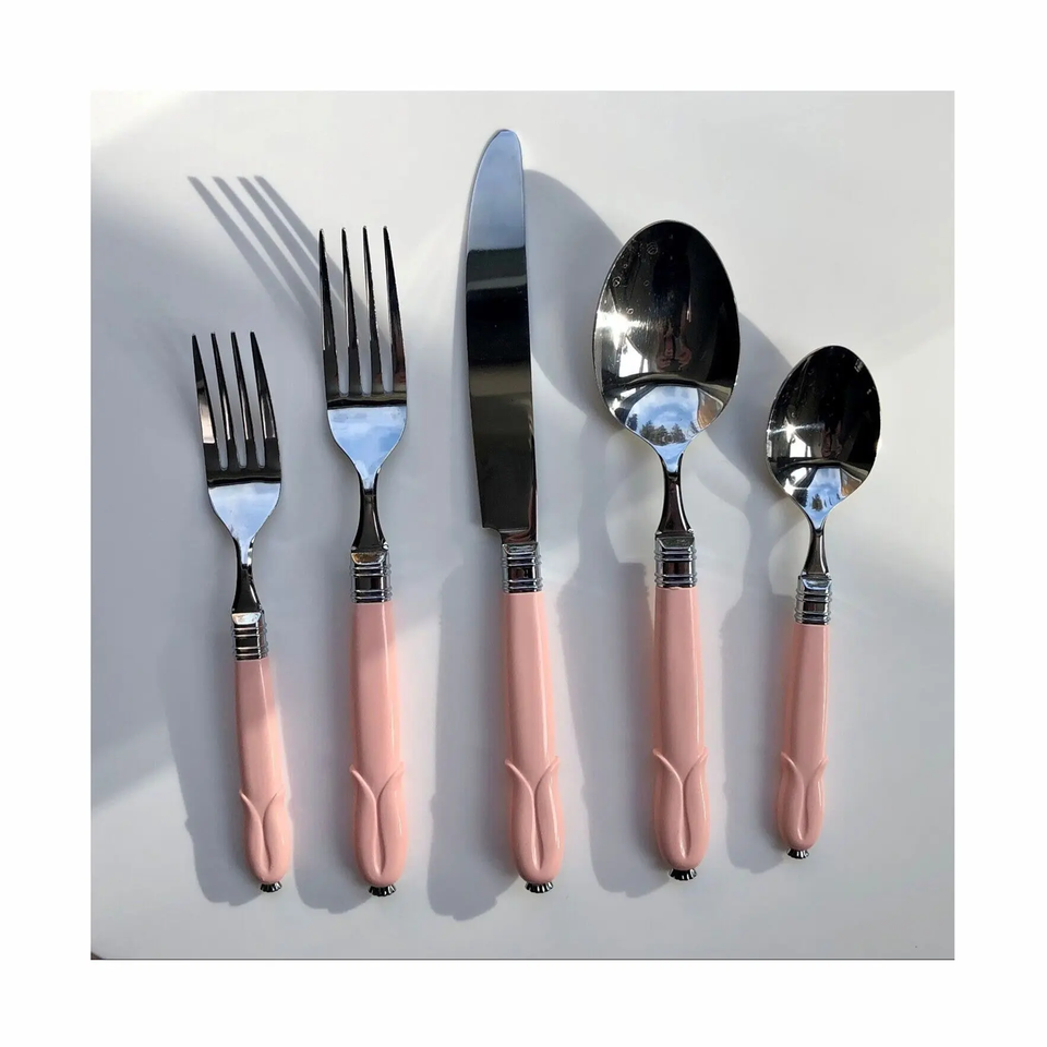 Ensembles de couverts en laiton de haute qualité avec poignée en résine poignée de vaisselle ensemble de couverts 5 pièces avec vente