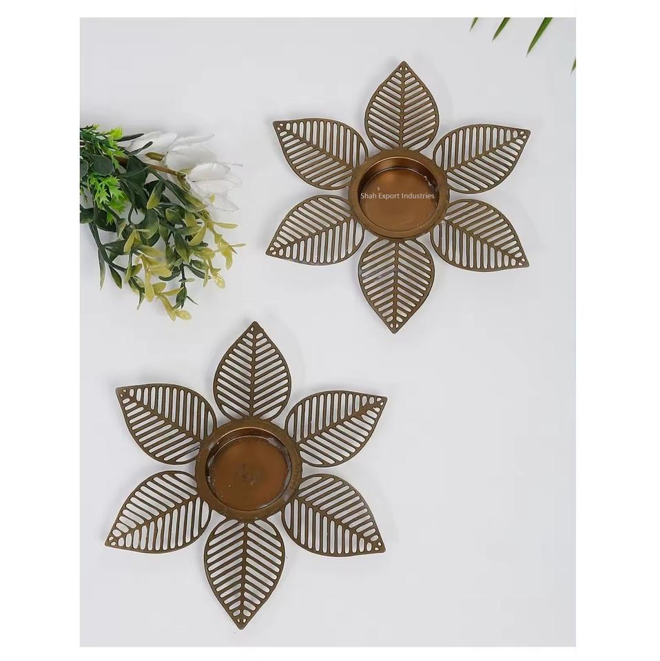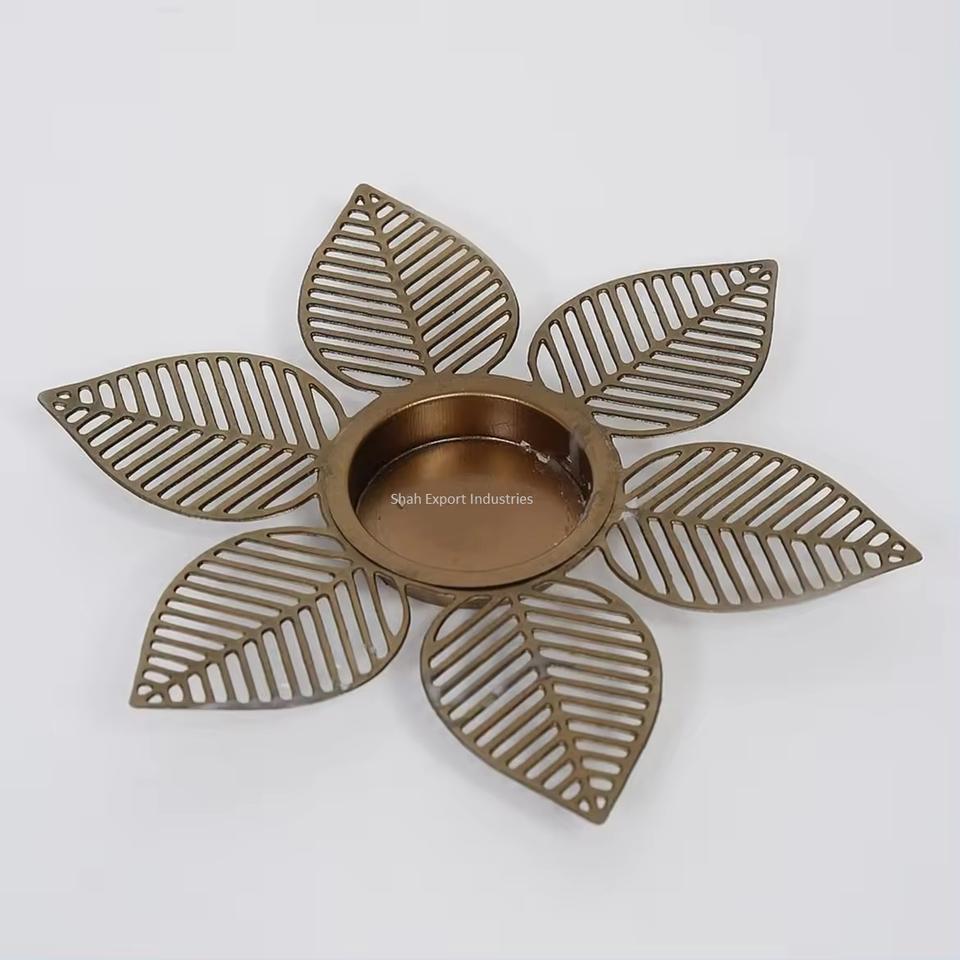 Bougeoir à thé doré en laiton de haute qualité avec conception de fleurs pour la décoration de Noël et de Diwali