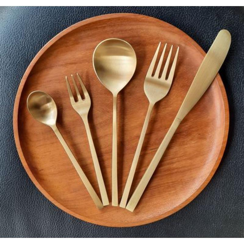 High Quality Brass Matte Cutlery Set of 5 With Gold Handle at Low Cost Unique Flatware Sets for Kitchen & Tabletop