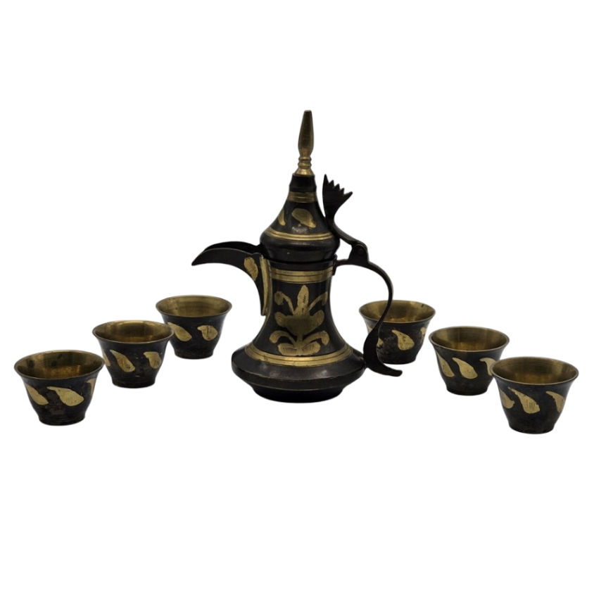 Service à café ou à thé vintage en laiton de haute qualité avec de belles gravures, finition polie pour la maison et les ustensiles de cuisine d'hôtel