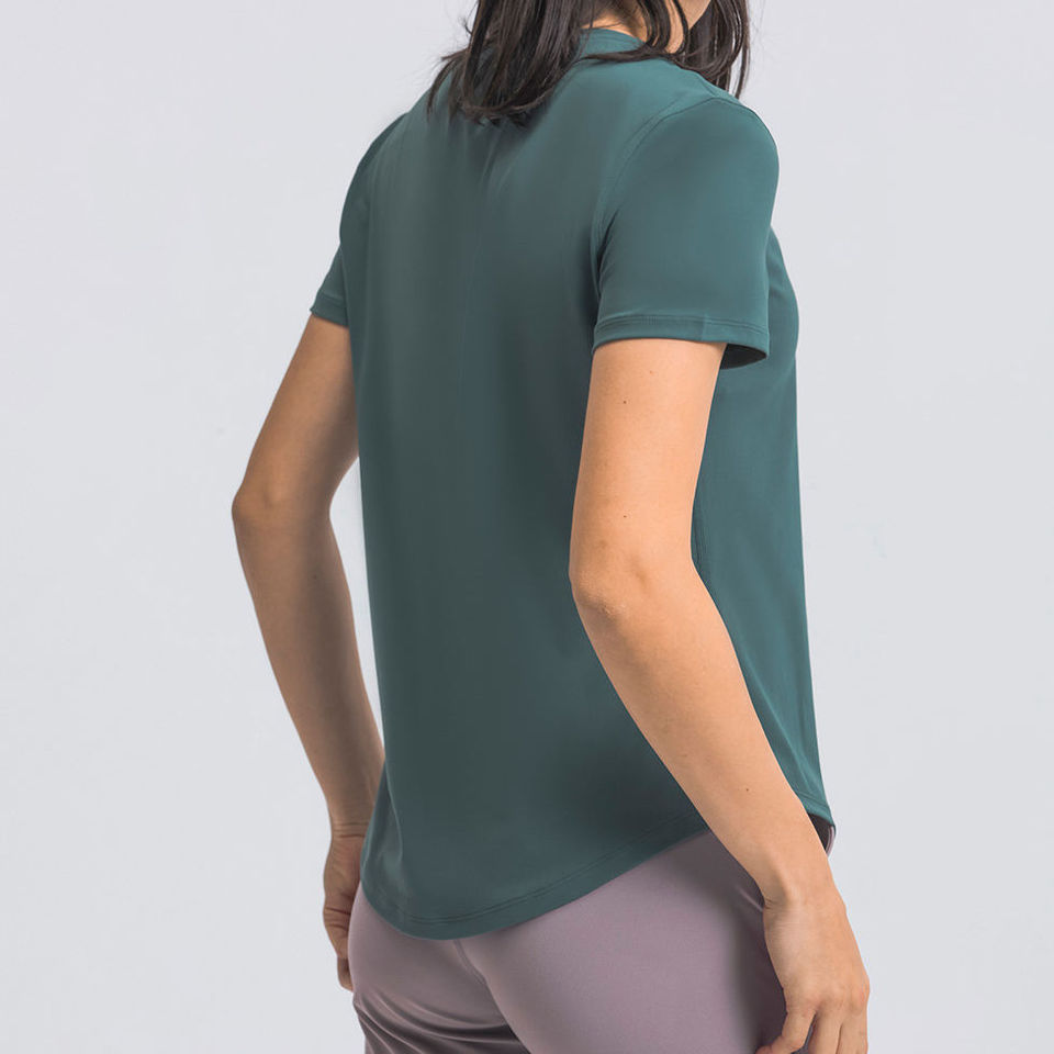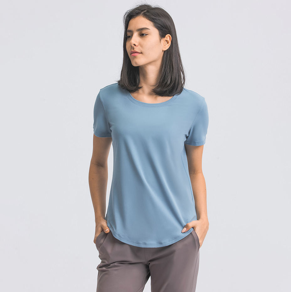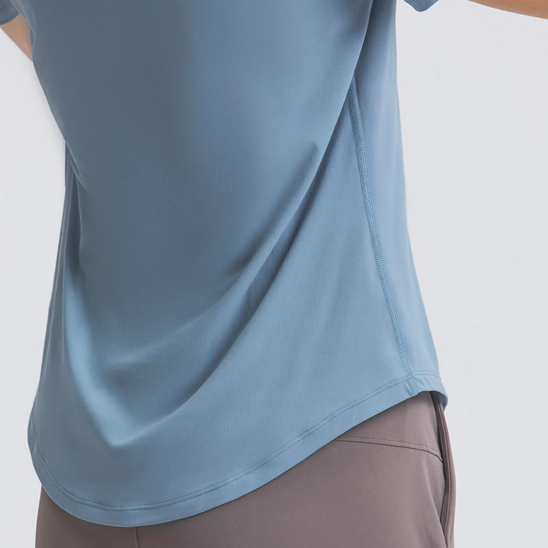 T-shirt de sport unisexe de haute qualité, mignon, respirant, couleur unie, manches courtes, pour l'été, yoga, fitness, longueur mi-cuisse, pour la salle de sport