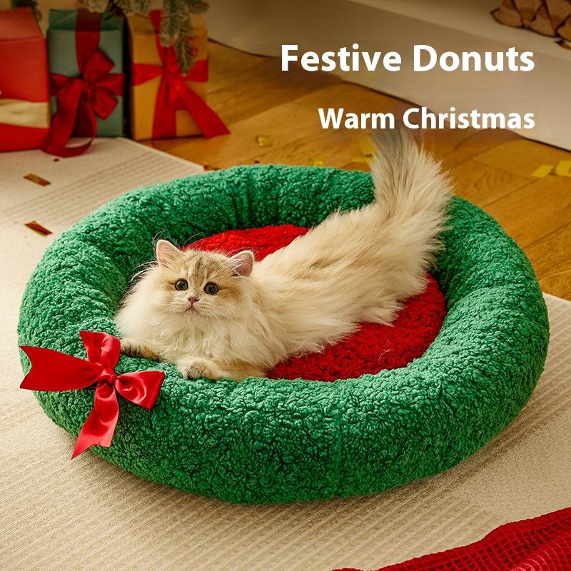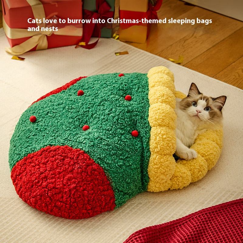 Haute qualité respirant dessin animé Style chaussettes de noël chat sommeil maison et arbre de noël rond nid pour animaux de compagnie pour chats et chiens