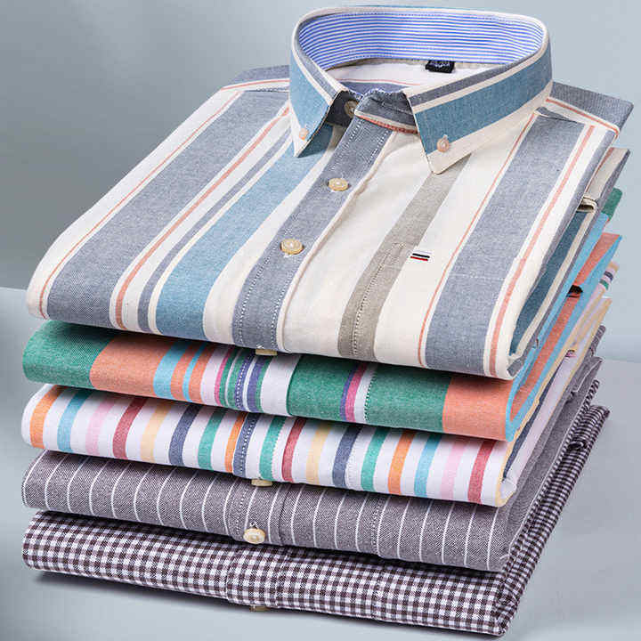 Chemises pour hommes respirantes de haute qualité | Slim Fit Striped Office Casual Plus Size Cotton Long-Sleeve Oxford Fashion Shirts