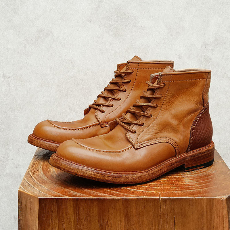 Bottes à lacets marron de haute qualité pour hommes, mocassins en cuir véritable imperméables et antidérapants, style rétro Goodyear