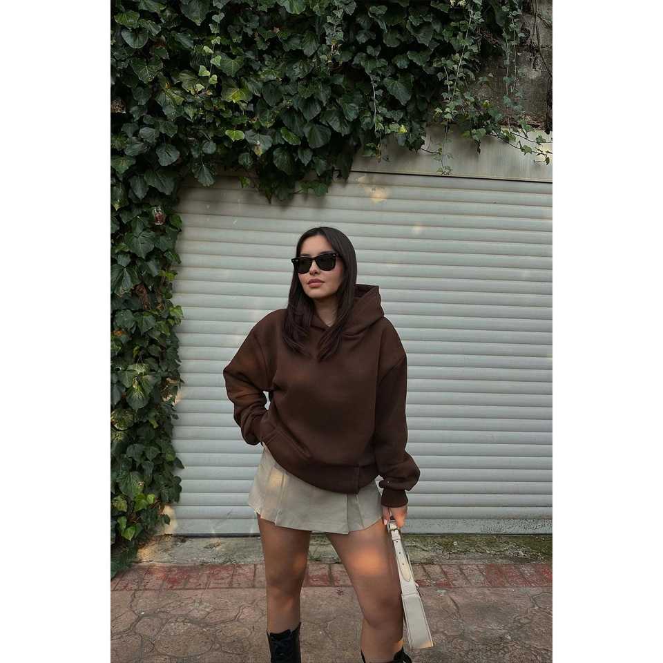 Sweat-shirt à capuche oversize marron de haute qualité pour femmes avec imprimé léopard et motif de lettres au dos