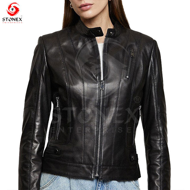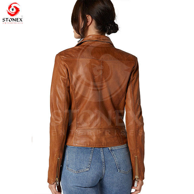 Keywords:High Quality Brown Women Leather Jacket Genuine Sheep leather.