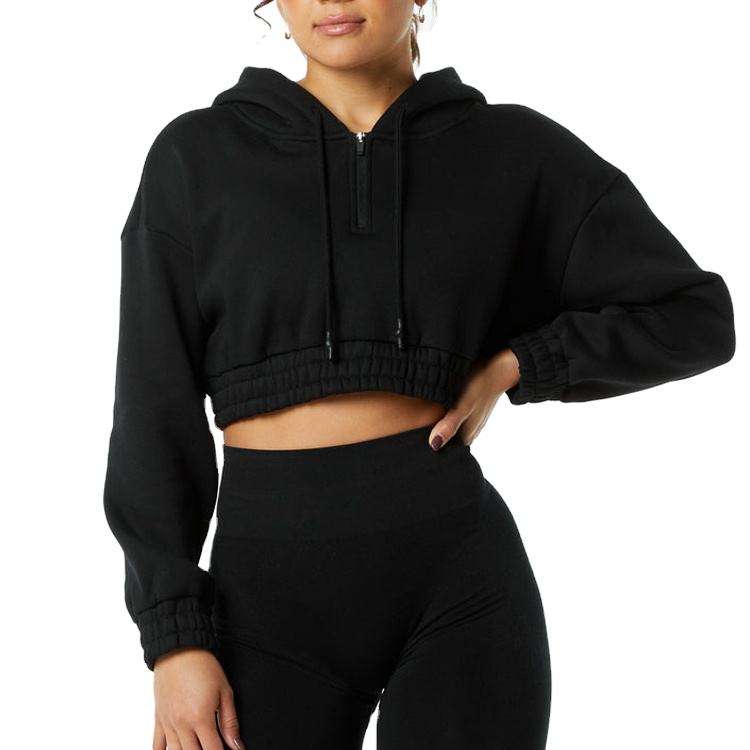 Sweat-shirts courts pour femmes de haute qualité, à épaules tombantes, imprimés, avec fermeture éclair 1/4, cordons de serrage, surdimensionnés, classiques, 2025
