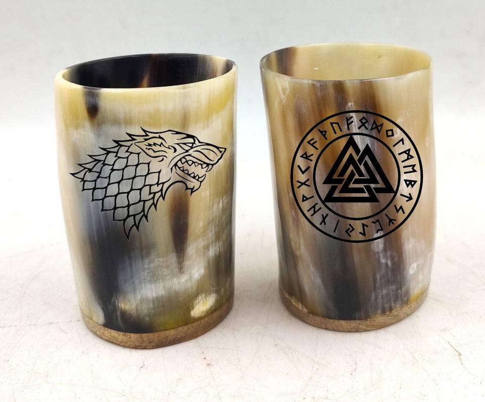 Haute qualité corne de buffle coup tasses gobelet sculpté nordique Viking corne à boire décoration de la maison vache boeuf corne thème pour noël
