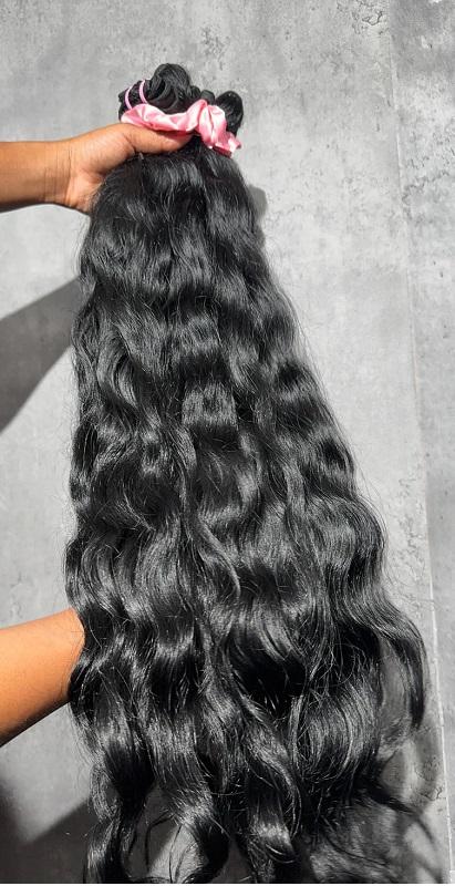 Haute Qualité En Vrac Ondulé 100% Humain Remy Unique Drawn Extensions De Cheveux Noir Couleur Naturel Vierge Cheveux Indiens