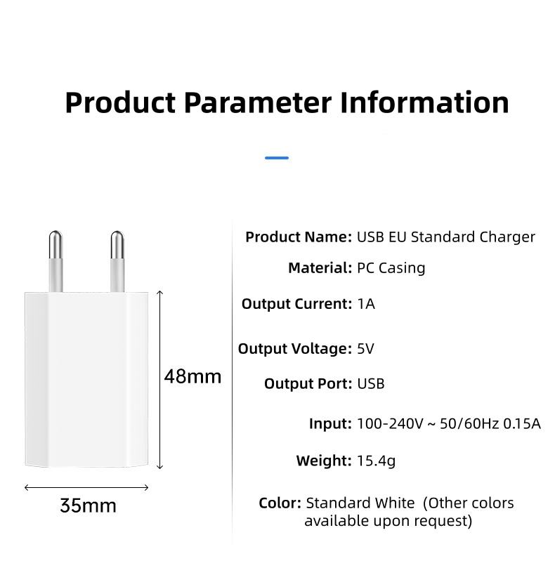 Chargeur mural USB de haute qualité avec certification CE, prise EU, USB-A, 5V1A réel, pour iPhone 5s 6s 7 8 Plus Mini, adaptateur d'alimentation de voyage