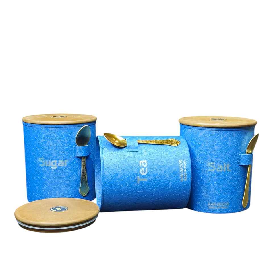 Ensemble de 3 boîtes de conserve de haute qualité, couleur bleue, avec couvercle en bois, écologiques, pour la maison, l'hôtel, la cuisine, le restaurant, au prix de gros