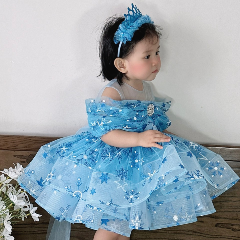 Product Name:Costume Cartoon - Elsa Short Dress With Tulle Skirt