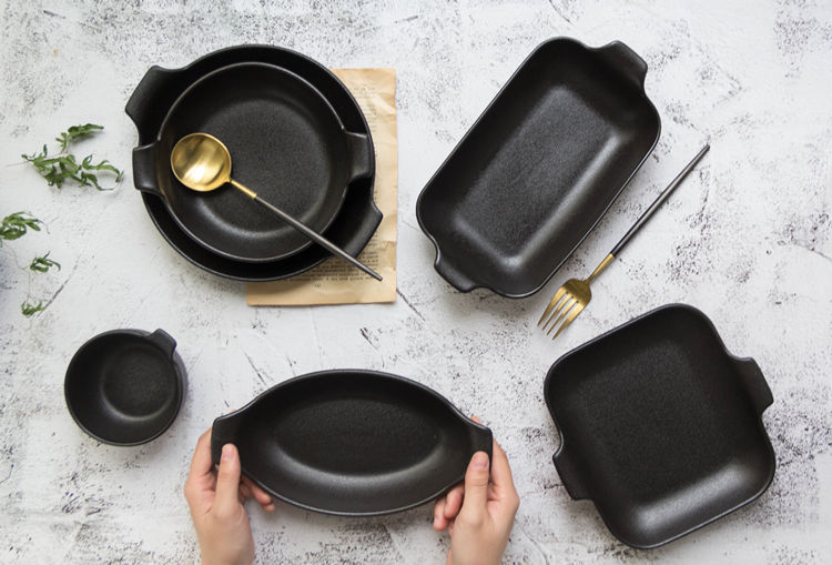 Nom du produit:Vaisselle noire porcelaine baker ustensiles de cuisson en céramique plats de cuisson