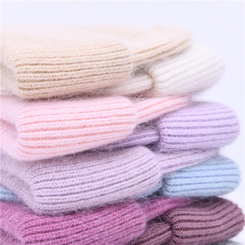 Haute qualité décontracté Angora longue fourrure de lapin cachemire laine hiver luxe moelleux filles femmes Beanie Gorras Jacquard tricoté chapeau