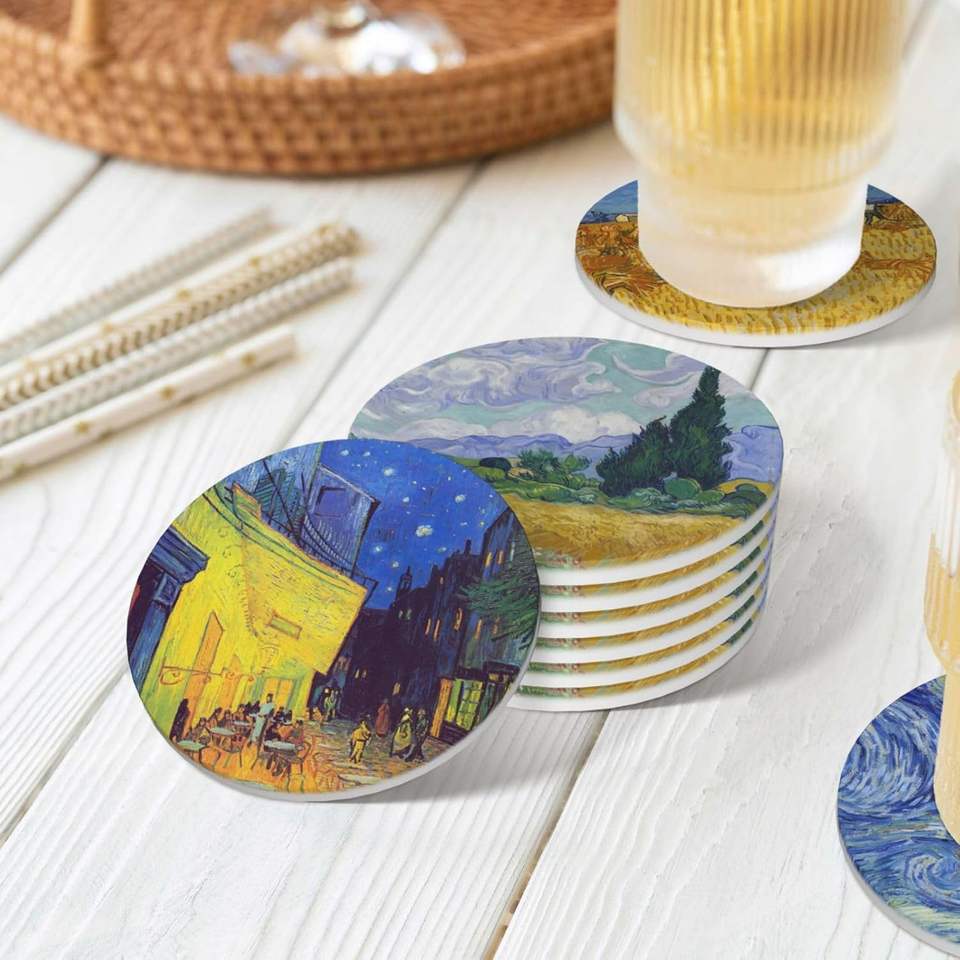 Sous-verres en céramique de haute qualité, tapis de table, divers motifs de tasses de bonne qualité, brillants, ronds, sublimation 3D, liège, excellent ensemble cadeau