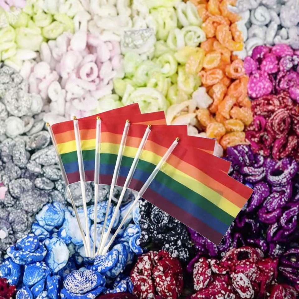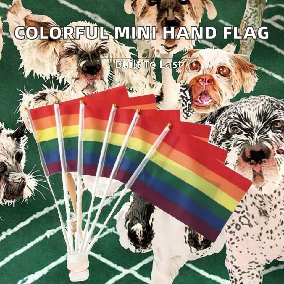Drapeaux arc-en-ciel imprimés numériquement double face multicolores de haute qualité et bon marché, tous pays, 14x21cm, mini drapeaux à agiter à la main en polyester