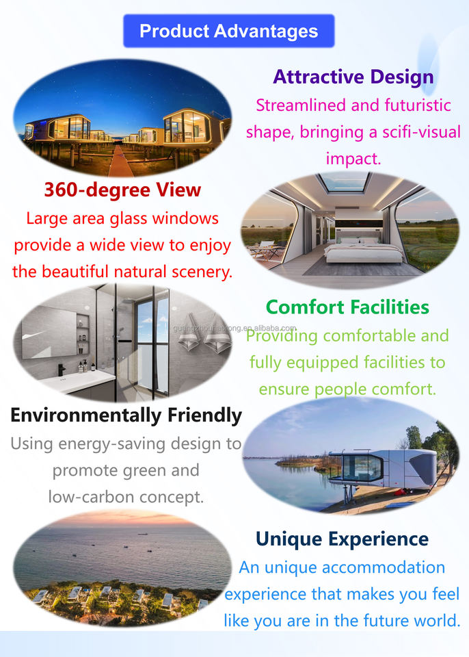 Maison préfabriquée de haute qualité à prix avantageux, capsule spatiale pour le camping et les vacances